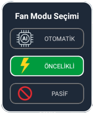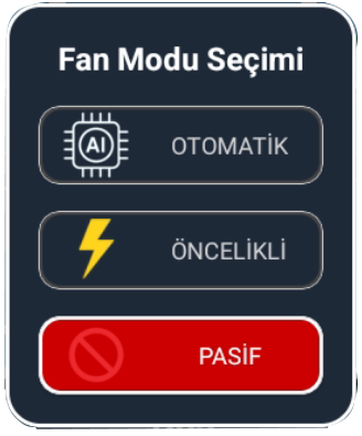 Öncelikli Mod: İstediğiniz fanlara öncelik vererek havalandırma yapılırken ilk olarak bu fanların çalışmasını sağlamak için kullanılır. Öncelikli olarak seçilen fan rengi Yeşile Döner