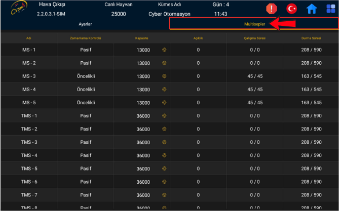 Multisepler Sekmesinde ise; Tüm Fanlarınızın kapasitesini girebileceğiniz bir tablo bulunmaktadır.