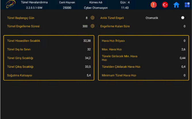 Tünel Havalandırma Menüsünde Tünel Havalandırma ile ilgili bilgiler ve ayarlar yer almaktadır.