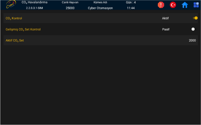 CO² Havalandırma menüsünde de CO² Havalandırmayı Açıp Kapatabileceğiniz bir bölüm bulunur. Ayrıca CO² Set değerini de buradan değiştirebilirsiniz.