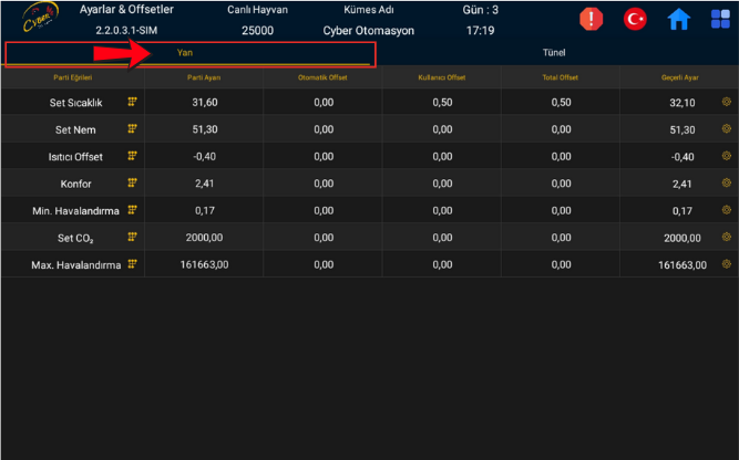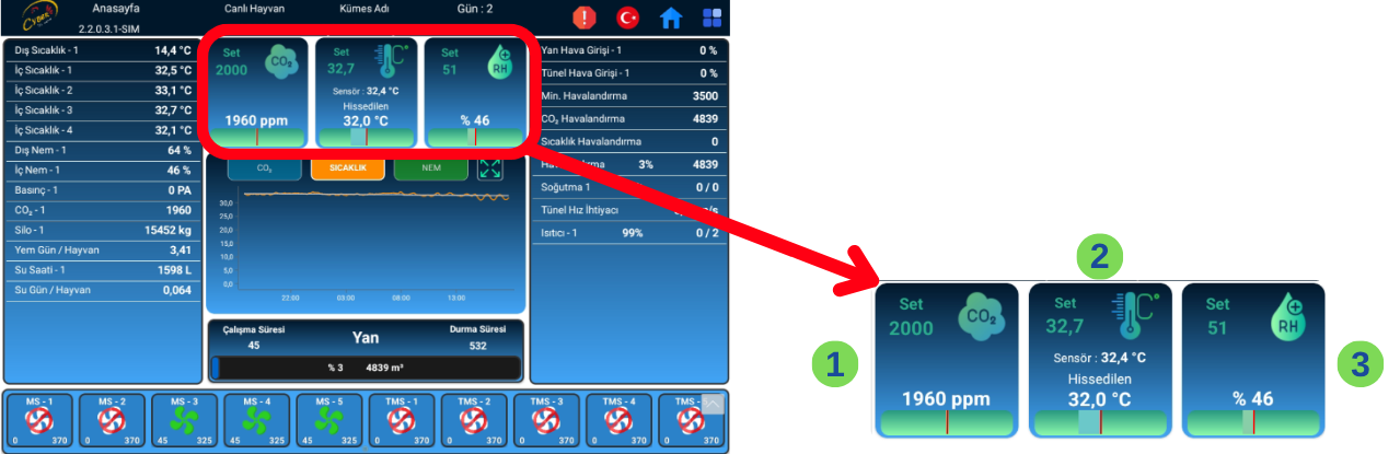 Set değeri sıcaklık, nem ve karbondioksit için istediğimiz değerdir. Cyber Otomasyon; hava şartları ve kümes ortamı ile değişen bu değerleri belirlediğiniz değerlere ayarlamak için çalışır.